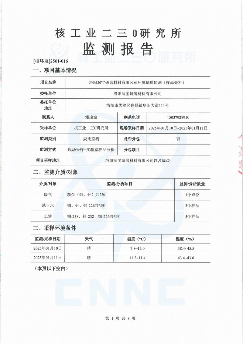 環(huán)保輻射年度報(bào)告 時(shí)間:2025-03-03點(diǎn)擊量:1638 上一篇:環(huán)境輻射監(jiān)測(cè)報(bào)告 下一篇:洛陽(yáng)潤(rùn)寶研磨材料有限公司環(huán)境輻射監(jiān)測(cè)報(bào)告